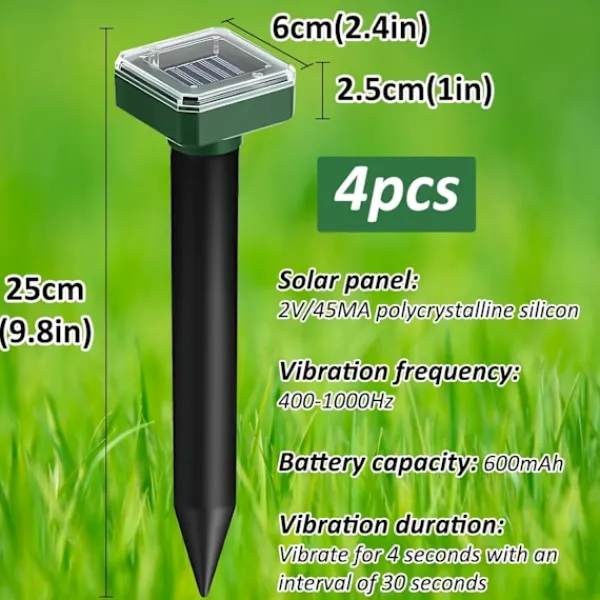 【Mångsidig】Solcellsavvisaren för mullvadar avger starka vibrationsvågor och surrande ljud som gör djuren obekväma och driver bort dem. Den är lämplig för öppna gräsmattor, parker, gårdar, trädgårdar och andra öppna platser.