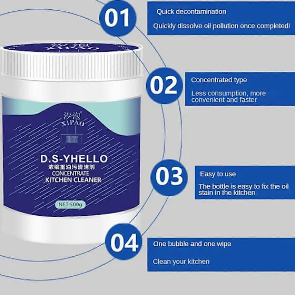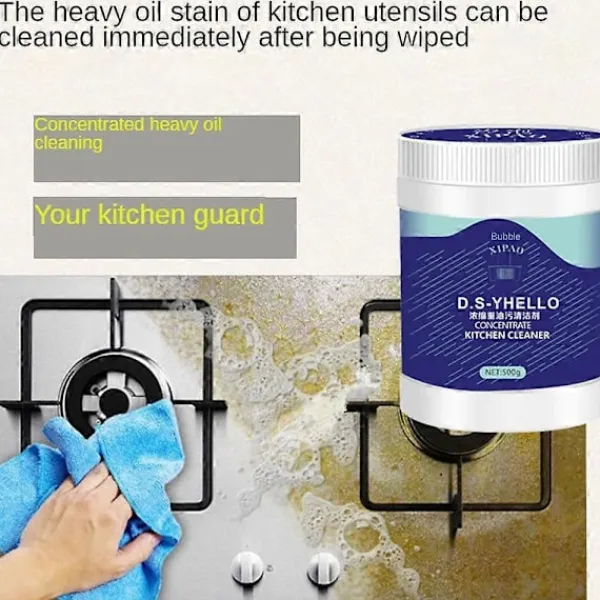 3. Användningsområde: Den är lämplig för kraftiga oljefläckar på olika köksytor, såsom fläktar, spiskåpor, gasspisar, spisar, köksglas och tjocka oljefläckar på diskbänken.