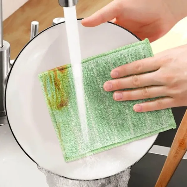 ”Paketet innehåller 2 bambudukar, 2 rengöringsdukar och 2 bambusvampar, magisk duk för alla hushållsfläckar.