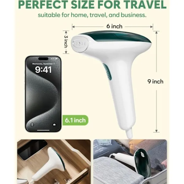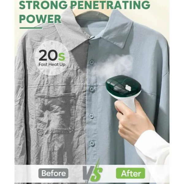 【20s Snabb Uppvärmning】Handhållen Ångare, du är mindre än en minut från fräschare, skrynkelfria kläder – perfekt när du reser eller om du har bråttom, väger bara 0,45 kg, kvinnor kan använda med en hand, den erbjuder ett bekvämt grepp under användning, du kommer inte att uppleva trötthet eller obehag när du använder den handhållna ångaren.