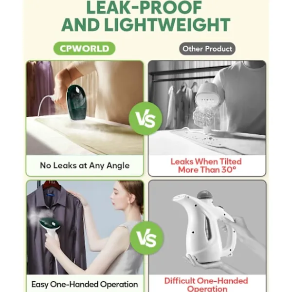 【360° Anti-spill & Anti-läck Ångare】Vår portabla ångare för kläder har en vetenskaplig design oavsett om det är horisontell eller vertikal ångning, denna design förbättrar användningsfriheten avsevärt och utan att oroa dig för läckage, oavsett hur du håller den, spiller eller sprutar den inte varmt vatten och håller sig sval på utsidan. Du kan njuta av säker och torr strykning utan risk för brännskador och vattenspill med denna handhållna klädångare.