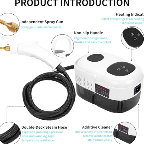 【Kraftfull ångrengörare】Högtrycksångare på 2500 W för kraftfull rengöring, ångrengörare för hemmabruk inkluderar förlängning av böjstångsmunstycket, stålborste, borste, stor borste med flera kombinationer och kollokation för djuprengöring