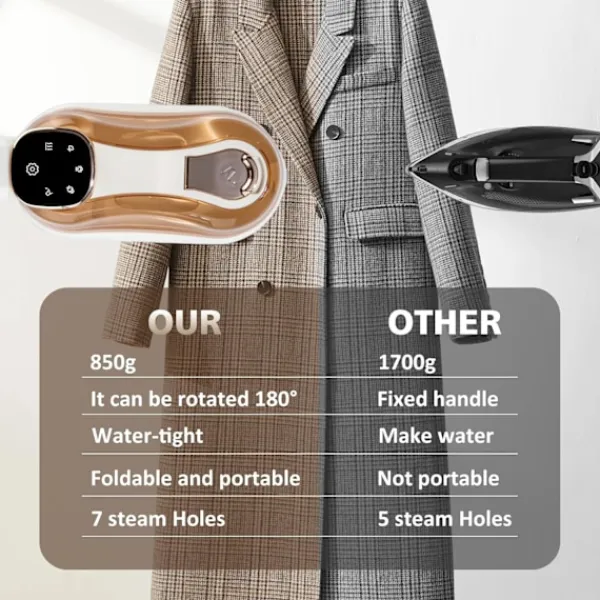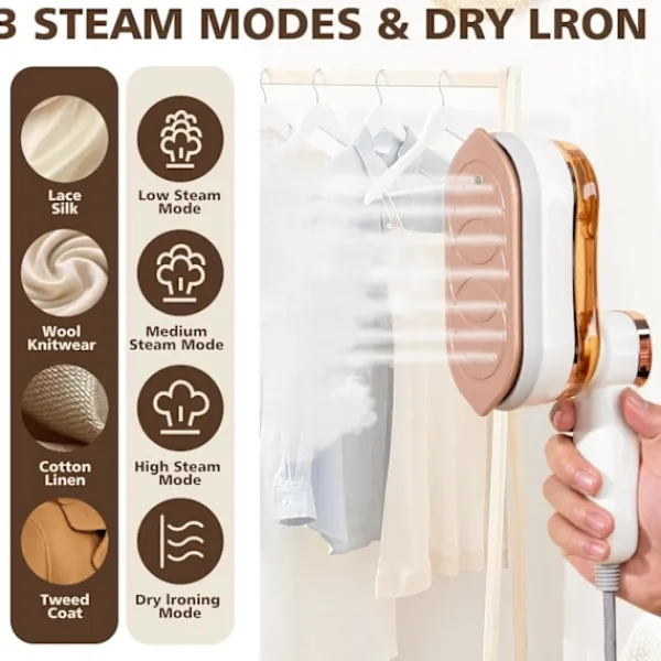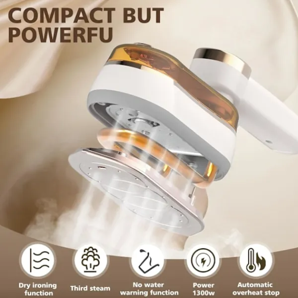 väskor eller resväskor, vilket gör det perfekt för affärsresor och pendling, vilket ger dig en snabb och effektiv strykupplevelse. Funktionen för vattenbristvarning skyddar produktens och klädernas säkerhet.