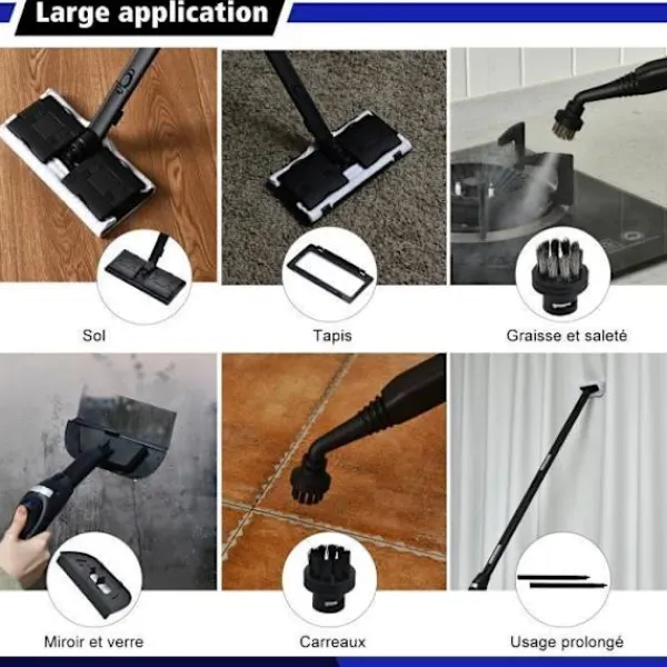 ——19 mångsidiga tillbehör för olika rengöringsytor.