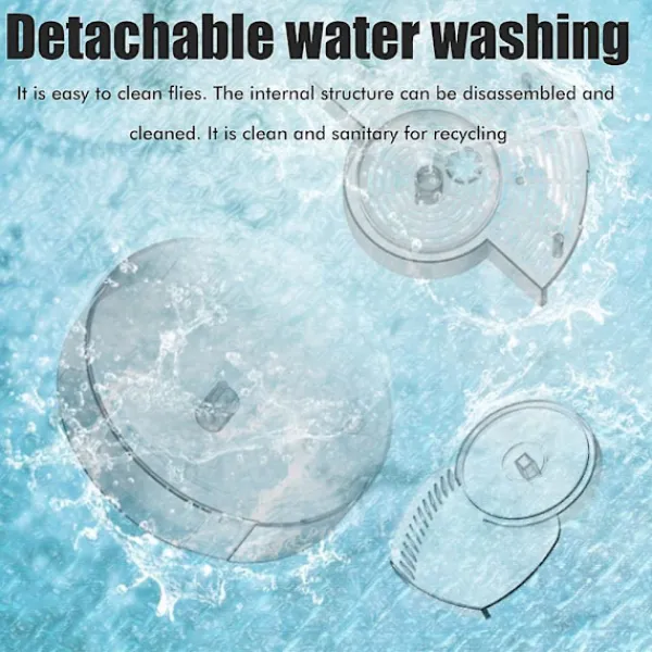 Multi-nätbeteplatsdesign: 360 roterande omnidirektionell fångstmetod. Den transparenta skivan är utrustad med ett anti-flyktsystem så att flugor inte kan komma ut efter att de har kommit in.