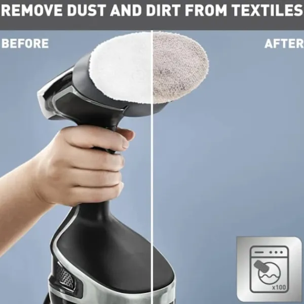 Ångrengöring: Utrustad med ett mikrofiberborsthuvud tar den bort hår, damm och ludd samtidigt som den desinficerar. Inga rengöringsmedel krävs; den rena, naturliga ångan dödar 99,99 % av virus, bakterier och bakterier.