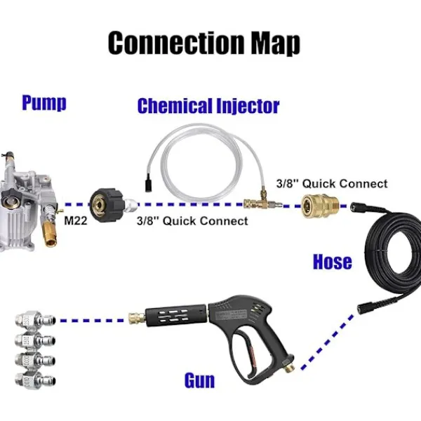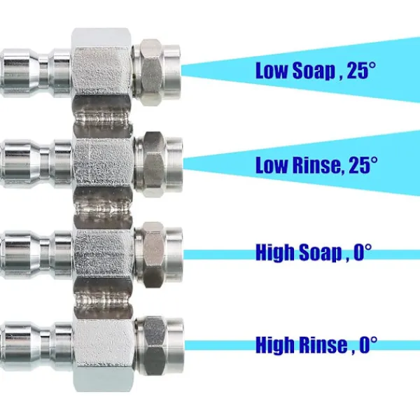 Användning: Stuprörsmunstyckessetet är perfekt för att rengöra svåråtkomliga områden, vilket gör rengöringen enklare med olika mönster. Nedströmsmetoder håller starka kemikalier borta från din högtryckstvätt.