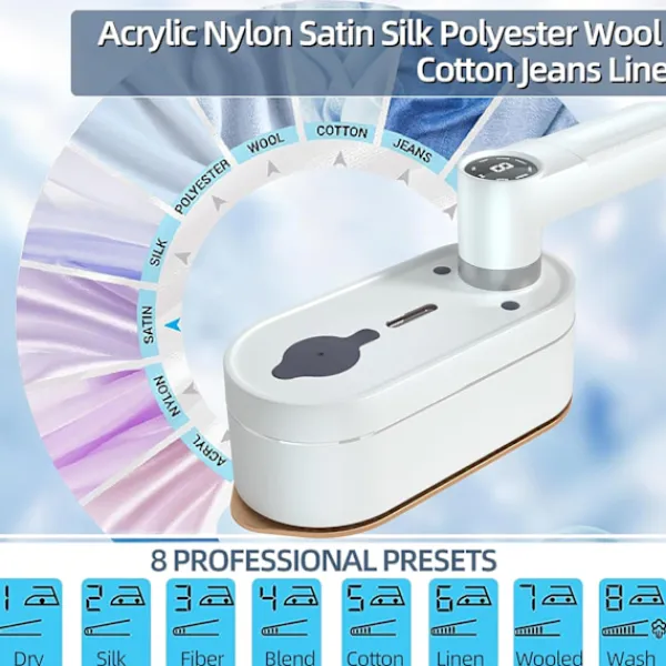 Snabb Uppvärmning och Kraftfull Ångare: Miniångstrykjärnet har 1200W, vilket kan värmas upp snabbt på 10 sekunder för konstant temperaturstrykning. Mycket snabbare än traditionella ångstrykjärn, vilket gör att kläderna blir som nya på nolltid. Ångaren har en kraftfull ångfunktion, som kan kontinuerligt avge ånga med en knapptryckning. Den fina ångan har stark penetrerande kraft, som enkelt och effektivt kan mjuka upp fibrerna i kläderna djupt och ta bort olika veck och envisa veck.