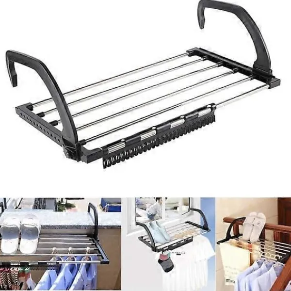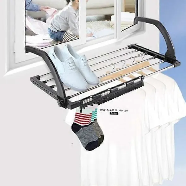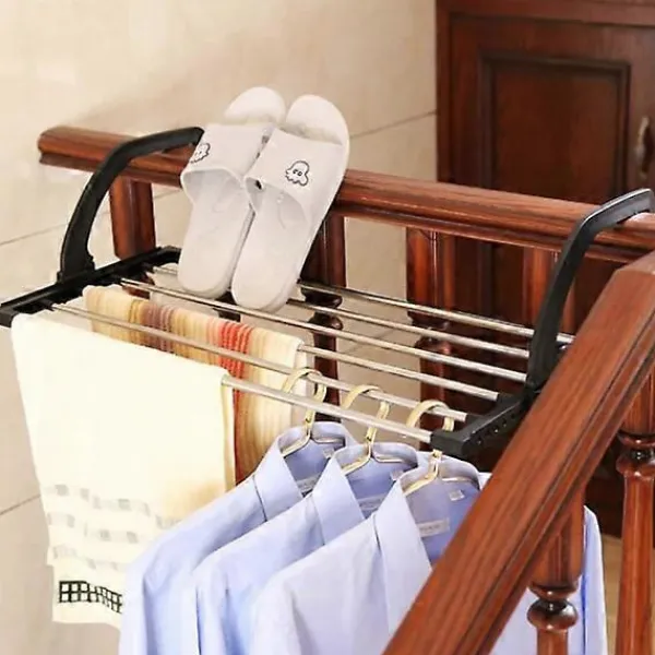 KOMPAKT Vår torkställning kan hängas på elementet, fönsterbrädan, balkongräcket, duschkabinen, badkarskanten etc. Ett viktigt tillbehör för små lägenheter, husvagnar och camping.