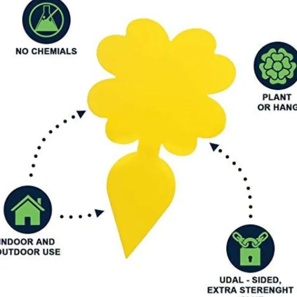 Klibbig fälla: Insektfälla i form av en liten rotfrukt och i lysande gul färg som lockar till sig flygande insekter där de fastnar på limmet. Sätt i den drabbade krukan eller ha i fruktskålen för att bli av med bananflugor.