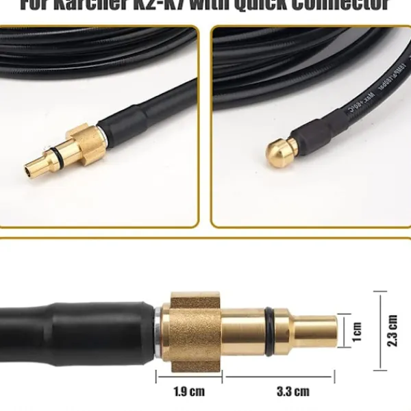 15 m slang i slitstarkt vävt tyg. Den bakre högtrycksstrålen skjuter slangen genom avloppet för enkel rensning.