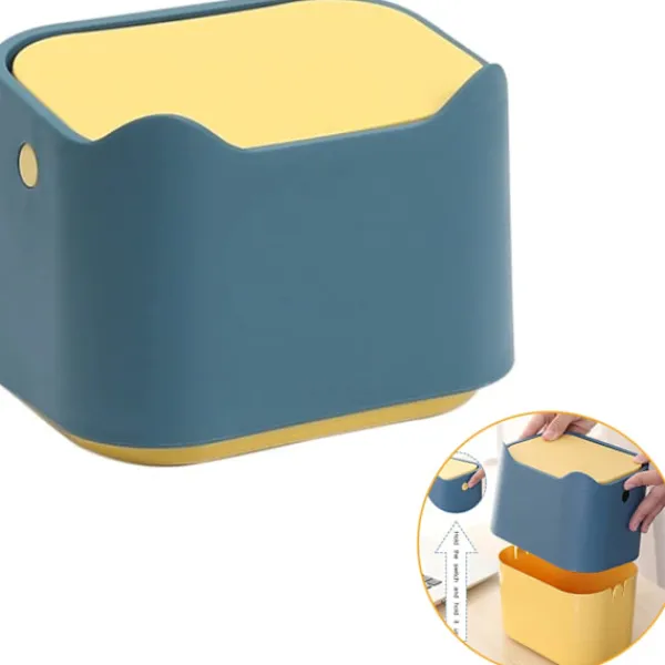【Tryckknappdesign】Bordssopbehållaren med en bekväm tryckdesign, sopbehållaren öppnas med bara ett tryck, så att ditt avfall kan täckas och inte avger någon lukt. Bordssopbehållaren är ett idealiskt val för bordssopbehållare.