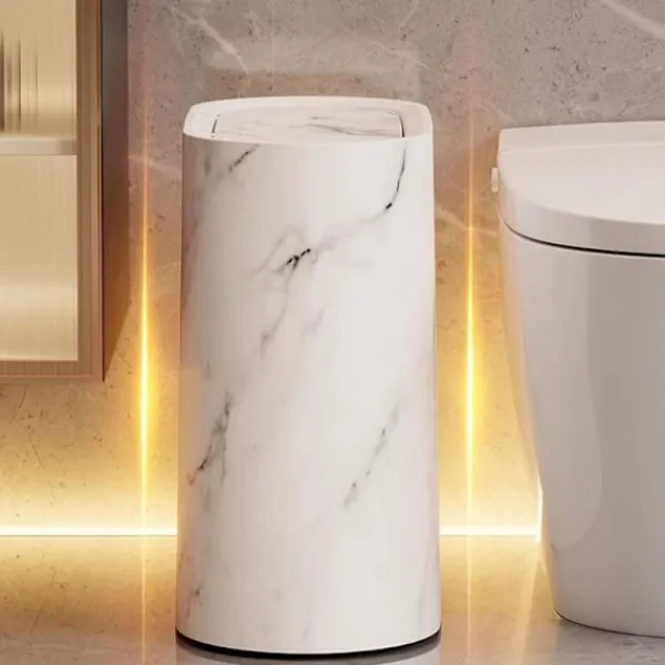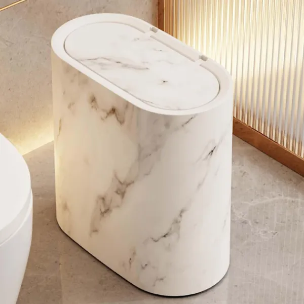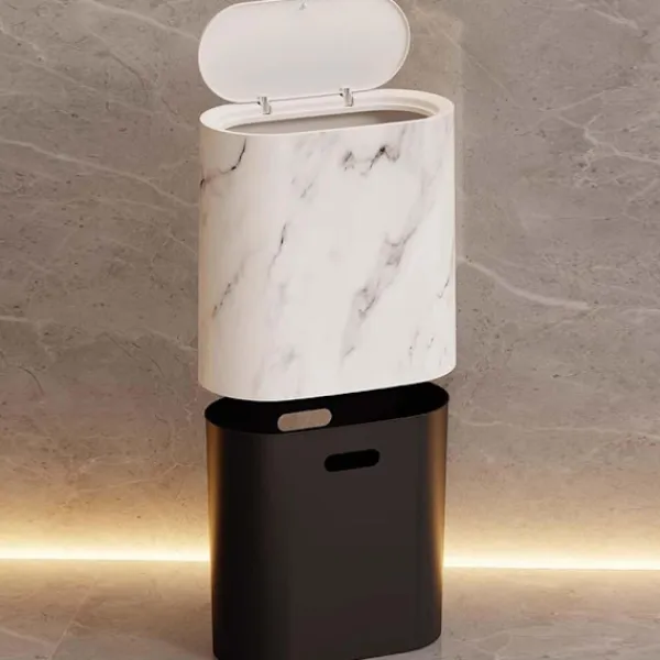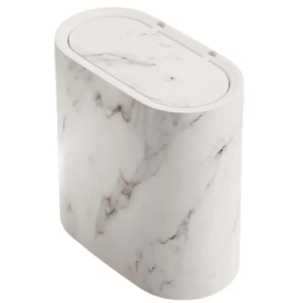 Perfekt för trånga utrymmen: Denna kompakta soptunna med lock passar perfekt i badrumshörn och små utrymmen, optimerad för att maximera utrymmesutnyttjandet i små utrymmen samtidigt som den håller omgivningen städad tack vare sin design för begränsade utrymmen.