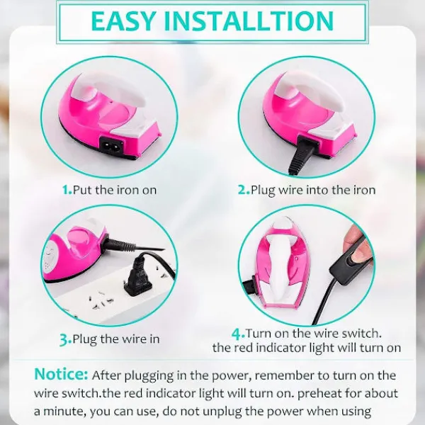 Funktioner: Mini strykjärn har rimlig storlek och användbara funktioner, ger stor bekvämlighet vid sömnadsprojekt och strykning av kläder med vinylmönster, fungerar bra i små och trånga utrymmen, lämplig för små projekt 3.