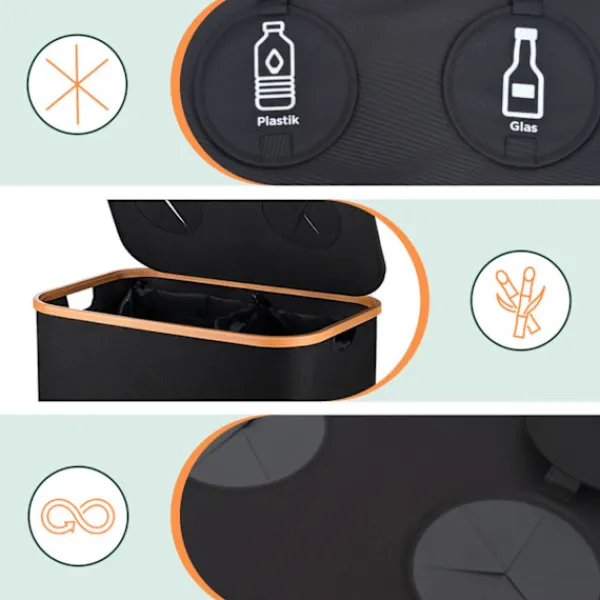- Funktioner: Avtagbara påsar, dubbla öppningar, luktförebyggande lock