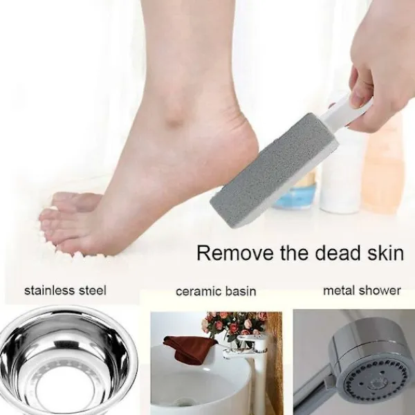 Rengör ytor snabbt och enkelt – rengör keramiska kranar, kalkavlagringar, poolplattor, toaletter, grillar, stål och sten. Miljövänligt och säkert: Tillverkad av 100 % naturlig pimpsten, den är miljövänlig och ofarlig för människor, djur, växter och vattendrag. Giftfri och luktfri Superpraktisk: Den robusta pimpstenen slutar med ett hållbart handtag, du kan rengöra kalkavlagringar i toaletten och hålla händerna borta från smuts. Det finns ett hål i toppen av handtaget så att du kan hänga det på gångjärnsklämman för förvaring efter användning. Lämplig för de flesta hushållsrengöringsmedel: Pimpsten är lämplig för rengöring av grillar, köks toaletter, poolplattor, keramiska kranar, tvättmaskiner, metallgaller eller apparater, och till och med död hud. SKYDDAR DINA HÄNDER – Inkluderar robusta plasthandtag för att skydda dina händer under rengöring