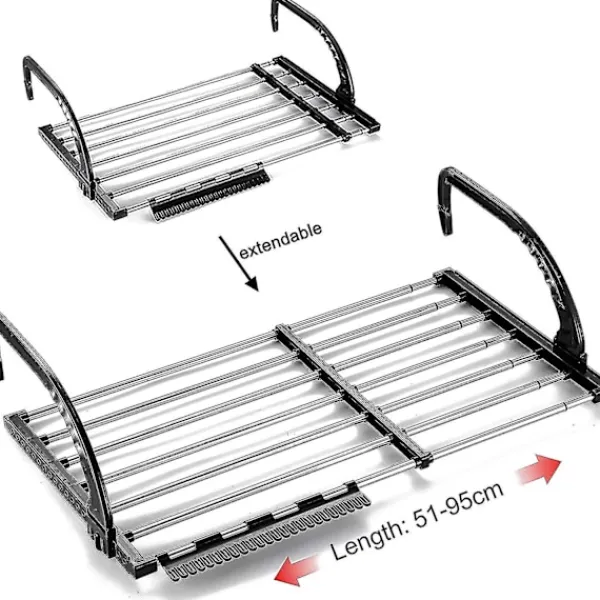 Utdragbara skenor: Detta torkställ kan förlängas från 51 till maximalt 95 cm i längd och passar därför in i en mängd olika situationer.