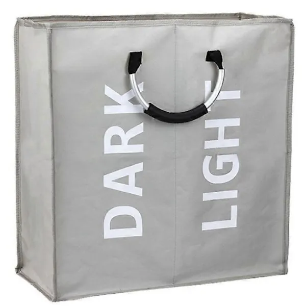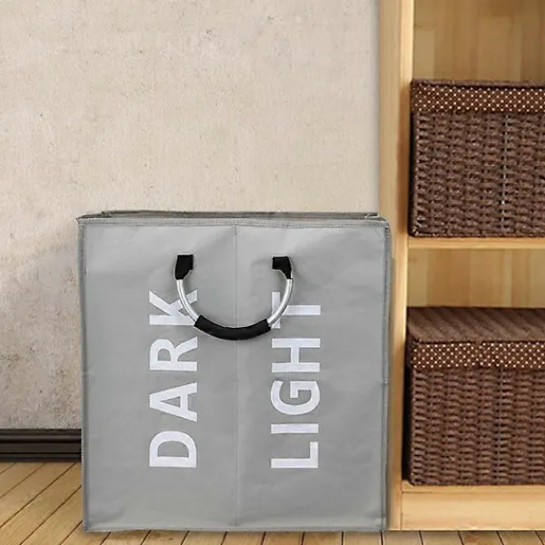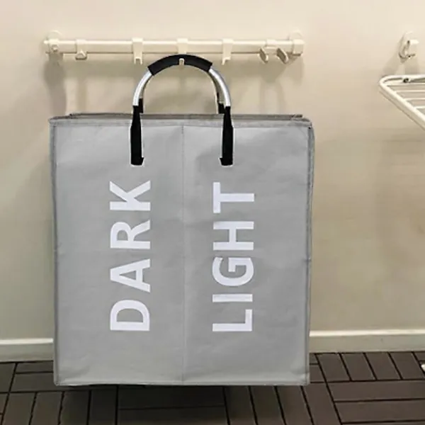 Tvättkorg med två sektioner: inbyggda två fack som separerar MÖRKA och LJUSA kläder.