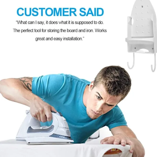 SPARA UTRYMME – Denna strykbrädeshållare håller ditt strykjärn och din strykbräda snyggt förvarade med en sladdförvaringslucka på undersidan som fälls in i förvaringsluckan för att spara utrymme och bekvämlighet. Håll rent.