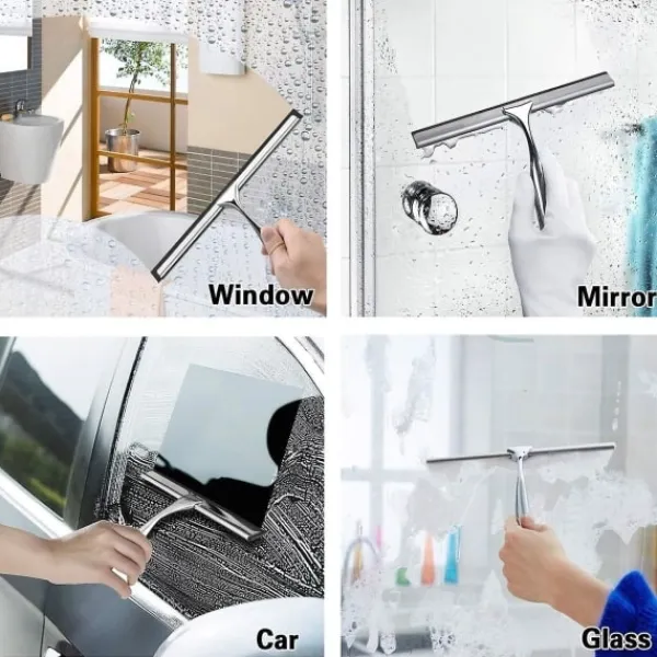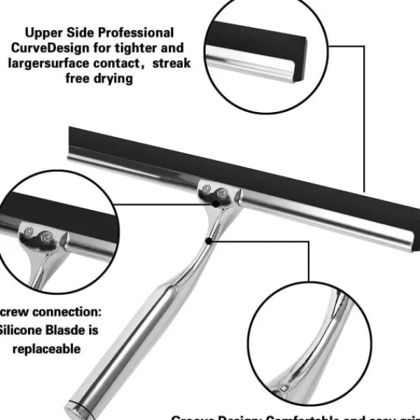 12 TUMS DUSCHSKRAPA: Denna 10 tums duschskrapa använder ett mjukt och flexibelt silikonmaterial som snabbt tar bort vattendroppar från alla plana ytor utan att lämna ränder. Torka snabbt glas-, kakel-, porslin- och metallytor med några få drag.
