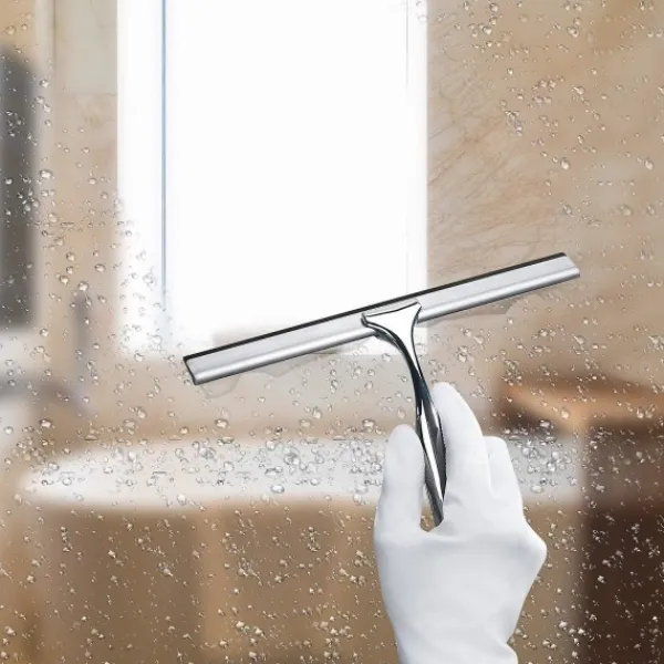 DUSCHSKRAPA I ROSTFRITT STÅL: Rostbeständig, hållbar och elegant. Denna duschskrapa är tillverkad av högkvalitativt rostfritt stål för långvarig användning, även i våta miljöer. Den ergonomiska designen gör den bekväm och halkfri att använda.