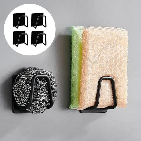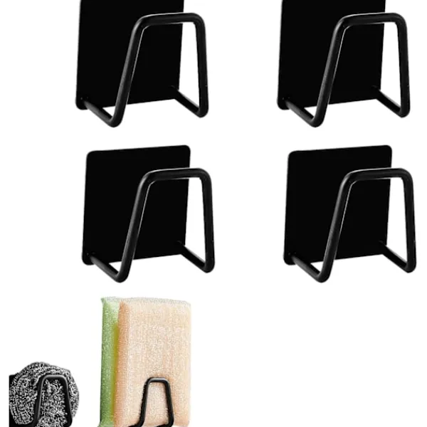 Material: Vår svamphållare är tillverkad av rostfritt stål och icke-märkande limmaterial. Den är hållbar och rostbeständig. Installationen kräver inga borrar eller andra verktyg och skadar inte väggen.