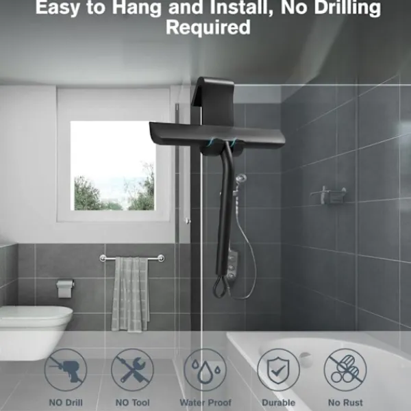Bekvämt handtag: Svart duschskrapa Den övergripande T-formade designen och den konkav-konvexa designen på handtaget är mer halkfria, lättare och bekvämare att hålla i; Rostfritt stålkärna erbjuder den stabilitet som krävs för maximal rengöringskraft med minimal ansträngning samtidigt som handtrötthet minimeras