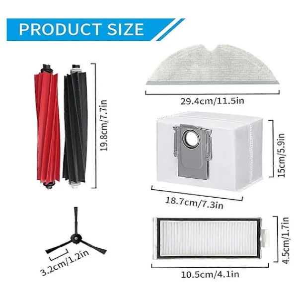 Budgetvänligt: Inkluderar 2 huvudborstar, 6 sidoborstar, 2 moppdukar, 4 HEPA-filter, 6 dammpåsar och 1 rengöringsborste. Vårt ersättningskit erbjuder dig en kostnadseffektiv lösning för att underhålla din dammsugare.