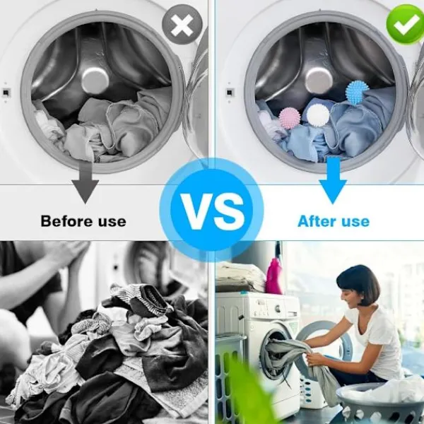 Enkel Rengöring: Torkbollarna hjälper till att hålla dina kläder trasselfria när du lägger bollarna mellan din tvätt. De förbättrar värmefördelningen med snabb luftflödescirkulation, vilket gör att kläderna kan rengöras mer effektivt.