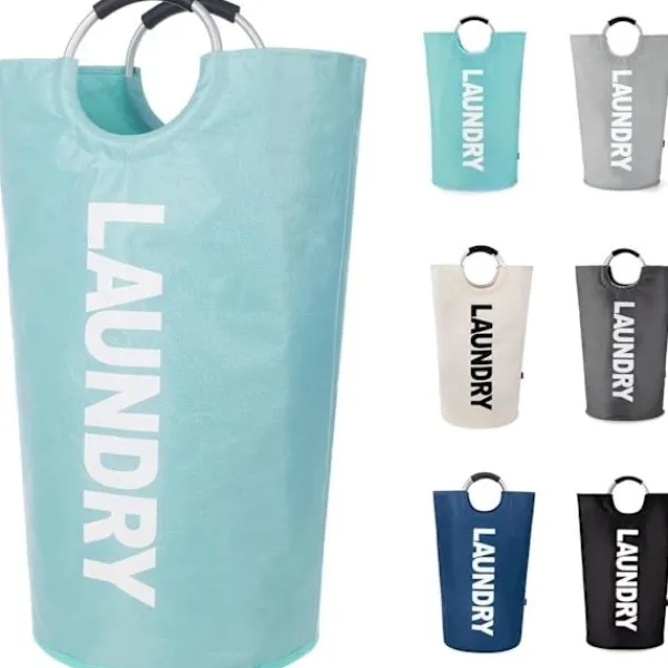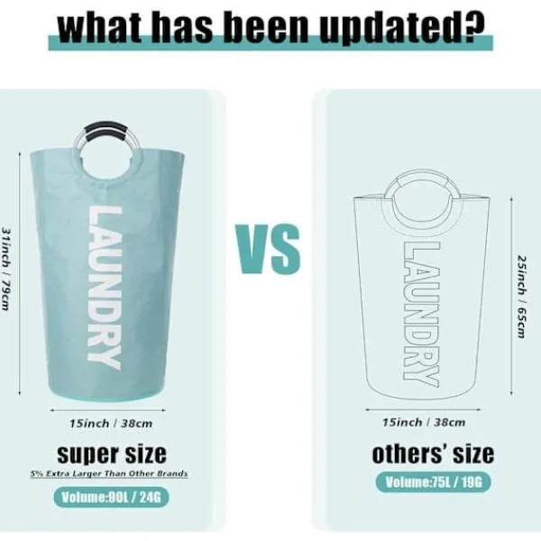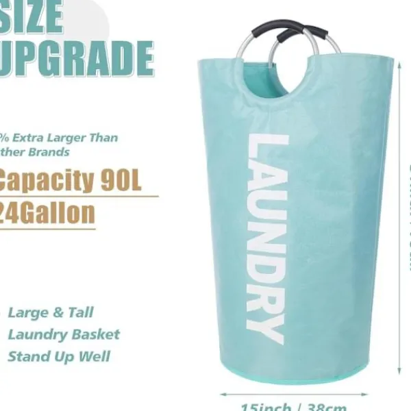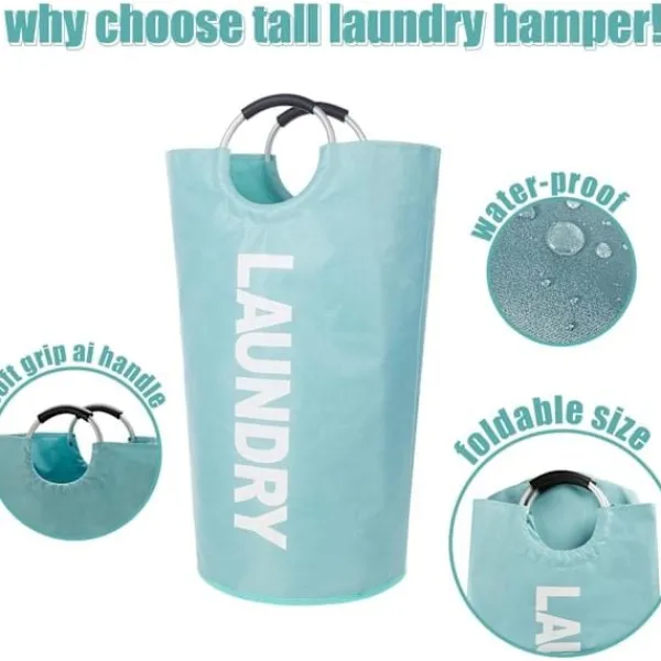 【Bekvämt handtag】 Hög tvättkorg i aluminiumlegering med EVA-design har stark bärförmåga, vilket kan hålla dina händer bekväma när du bär och gör det bekvämare att dra ut.