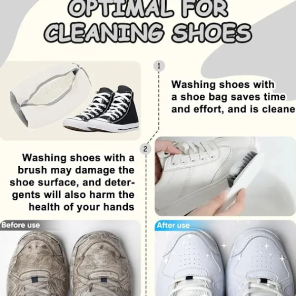 【ENKEL RENGÖRING】 【Inget mer handskrubbning】 Lägg bara dina skor i tvättpåsen och släng in dem i tvättmaskinen. Vår tvättmaskinspåse för träningsskor ger djuprengöring samtidigt som den håller dina skor säkra