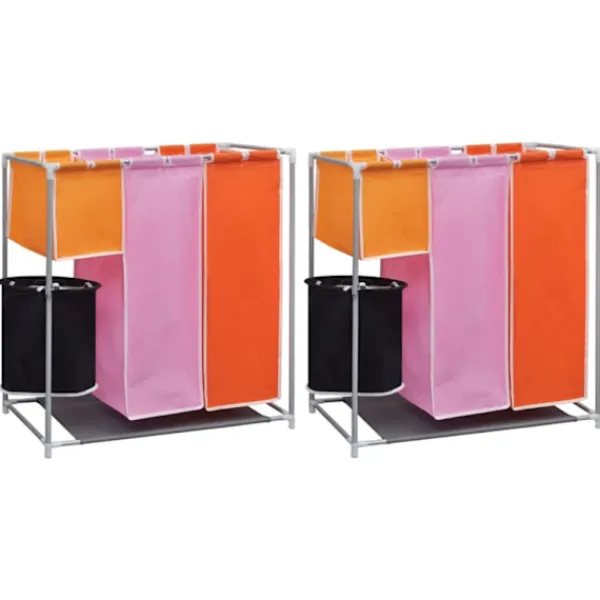 Varje tvättpåse, tillsammans med tvättkorgen, är avtagbara och tvättbara tack vare det högkvalitativa tyget. Den hållbara järnramen är lätt och stadig. Denna praktiska enhet har dessutom ett lager tyg i botten för att hålla fukt och smuts borta.