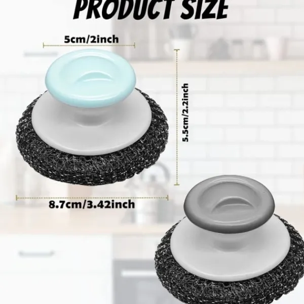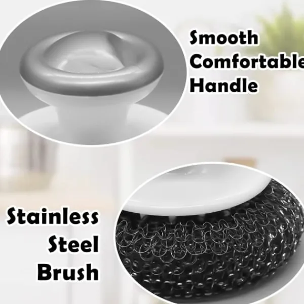 【Lätt att rengöra】Rostfria stålsvampar för grytor och stekpannor är lätta att rengöra och skrubba bort fläckar och fett på gjutjärnspannan, och kan också enkelt ta bort rost från botten av pannan, vilket gör den nyare än tidigare. Diskborsten med handtag kan användas med diskmedel för att ta bort fettfläckar snabbare.