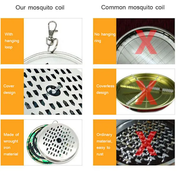 1、Tillverkad av högkvalitativt metallmaterial, fint utförande och hållbarhet. 2、Med lock och hängande ringdesign, kan hängas, lätt att använda hemma, utomhus, etc. 3、Intensiv spikdesign, den övre plattan är fixerad i håligheten, tätt fångad i myggspolen, stabil och inte svajande, inte lätt att falla av. 4、Hög temperaturbeständighet, lagring av sot för att förhindra spridning, rent och hygieniskt, för att undvika golvbrännmärken. 5、Myggreptilen kan användas inomhus och utomhus, lämplig för terrasser, däck, verandor, poolområden, bakgårdar, picknickar, resor, campingresor och alla utomhusaktiviteter. Material: metall