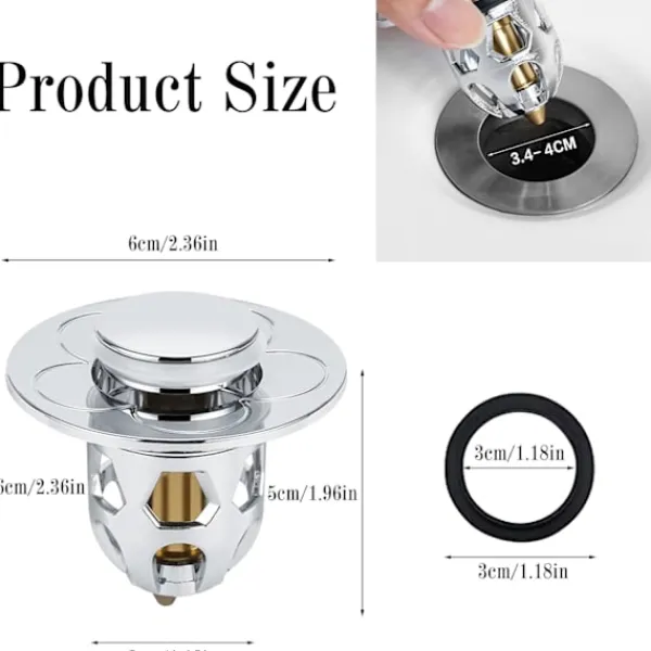 Universella dimensioner: Diskbänksavloppsproppen är lämplig för avloppshål med en innerdiameter på 34-40 mm och kan användas med olika typer av diskbänksavlopp. För att inte slösa din dyrbara tid rekommenderas det att mäta de dimensioner som krävs för installationen av avloppshålet före köp.
