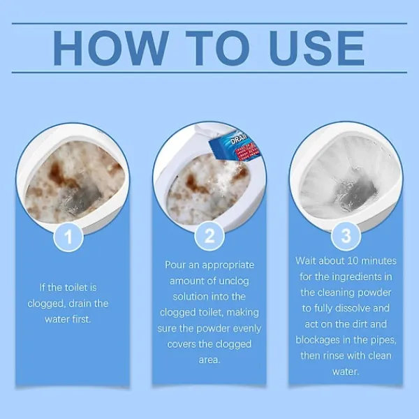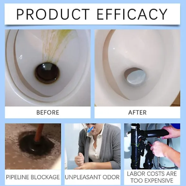 1. Den speciella formeln kan effektivt lossa blockeringar, smuts och sediment i rören för att säkerställa smidig dränering.
