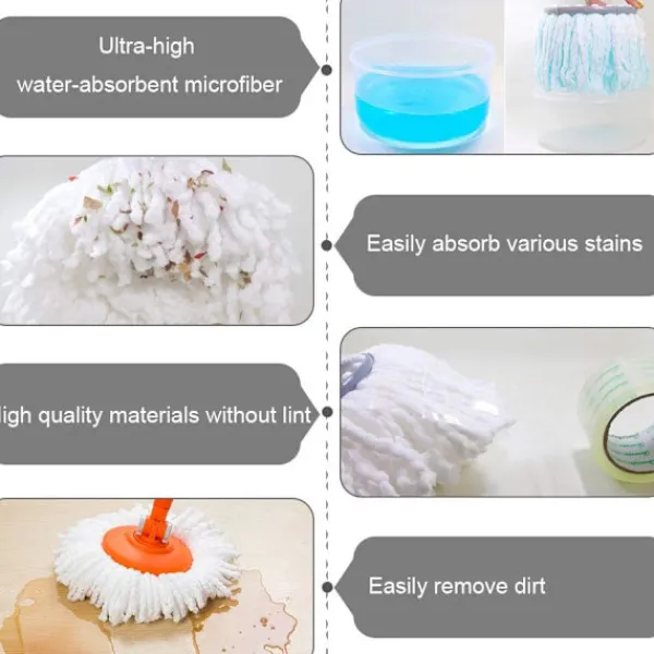 Satsen innehåller: innehåller 4 mopphuvuden för enkel rengöring och torkning. Snabb installation och enkel användning. Detta ersättningsmopphuvud är en bra hjälp för golv-, glas- och bilrengöring.