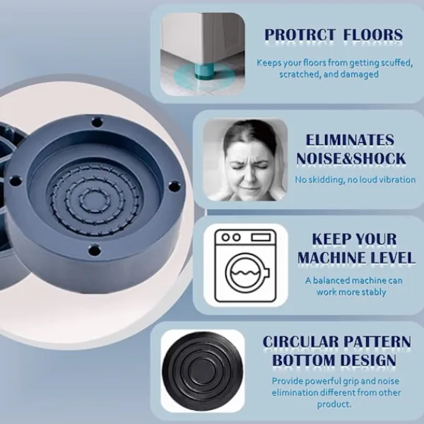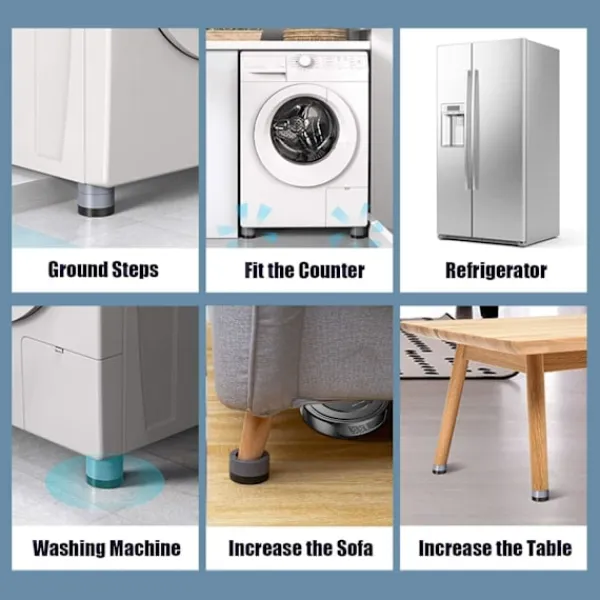 fyra ben. Det är väldigt enkelt att fästa våra gummifötter. Samtidigt kan vår design också effektivt lindra ljudet från tvättmaskinen eller torktumlaren på grund av vibrationer eller glidning