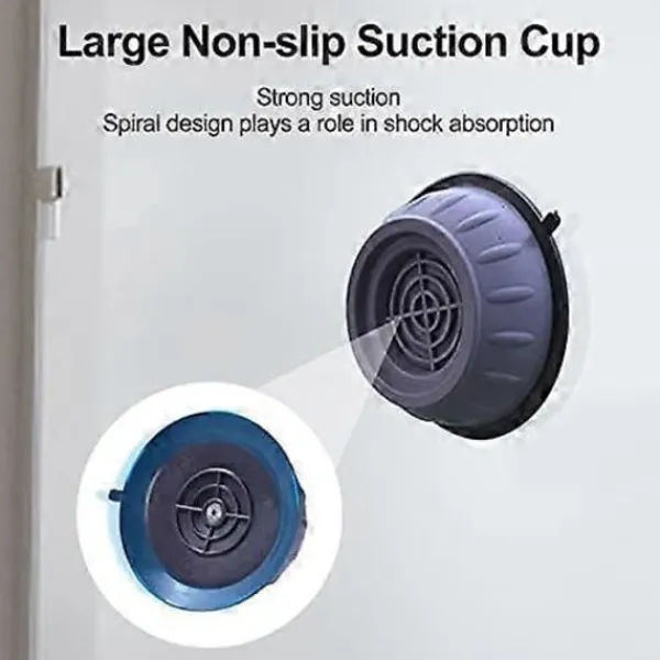 Vibrations- och ljudreducering: Anti-vibrationsfötterna för tvättmaskiner kan minska buller och vibrationer som orsakas av apparater i drift. Den stora halkfria sugkoppen på undersidan av tvättmaskinsfoten kan hålla din apparat i samma position, säkerställa apparatens stabilitet och förhindra att bottenplattan repas.