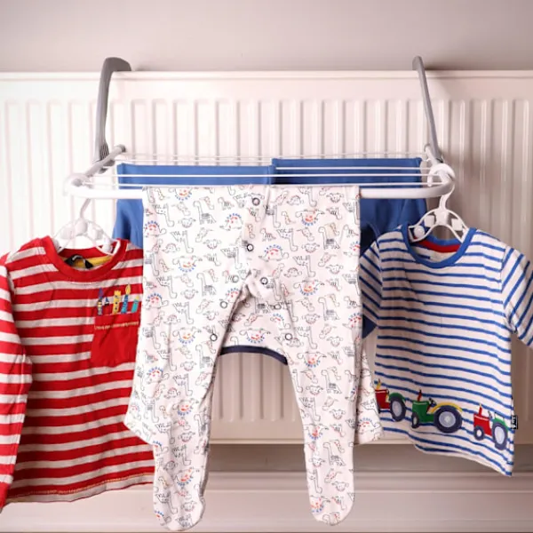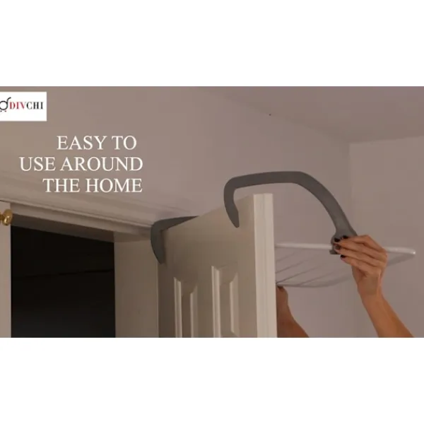 INGEN INSTALLATION NÖDVÄNDIG – Den påhängbara torkställningen kan hängas på vilken yta som helst upp till 16 cm tjock. Vik ihop torkställningen när du inte behöver använda den.