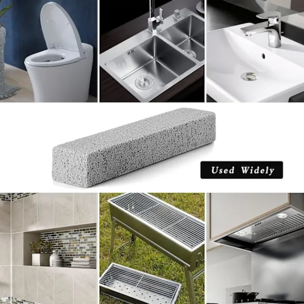 Användningsområde: Pimpsten används i toaletter för att rengöra kalkavlagringar, kalksten och hårda vattenringar på toaletter, handfat, badrumskakel och andra keramiska ytor. Den kan också användas för att ta bort rost och fett från grillar och ugnar.