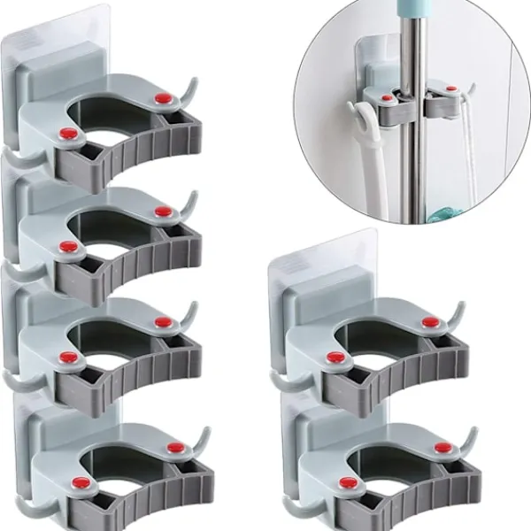 Förhindra att moppen möglar: Det är lätt att få mögel och producera lukt när du lägger en fuktig mopp på golvet. Använd moppklämman för att förlänga moppens livslängd. Kan även användas för att hänga hushållstillbehör som spadar, käppar, krattor etc.
