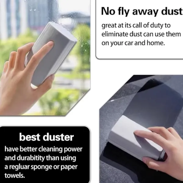 1. U-formad spårdesign för rengöringssvamp, används i dörr- och fönsterspår, luftspringor, golvplattor, golv och andra områden. Den andra sidan av den våta svamphållaren är platt, lämplig för rengöring av plana ytor som köksbänkar och fönster. 2. Återanvändbar dammsvamp är lämplig för persienner, jalusier, golv, takfläktar, möbler etc., speciellt kan den rengöra stora plana ytor runt huset väl. 3. Våt dammsvamp kan återanvändas efter tvätt och torkning, fäster vid damm och fångar upp damm för att snabba upp rengöringen, med en robust och mjuk design, inga repor vid upprepad skrubbning.