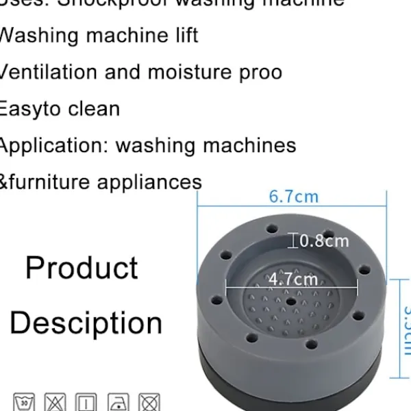 Lätt att installera —- Inga verktyg eller lim behövs. Placera helt enkelt de fyra gummistöd under hörnen på alla tvättmaskiner, diskmaskiner, torktumlare eller andra bullriga apparater, så slipper du aldrig mer höga ljud och vibrationer. Håll golvet torrt för att undvika att halka när du använder dessa dynor