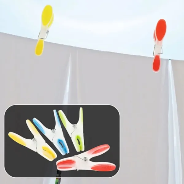 VINDTÅLIGA RÖSTFRIA KLÄDNYPOR: Dessa färgade tvättklädnypor kan användas för att säkert klämma fast och fästa långa halsdukar, kjolar, skjortor, örngott samt lätta föremål som näsdukar och underkläder. Även vid stark vind kommer dessa klädnypor att hålla kläderna fast så att de inte flyger iväg.
