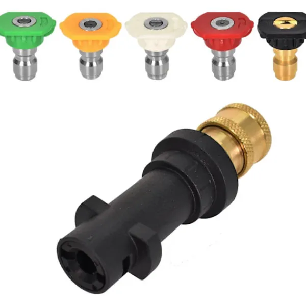 Komplett kit: Du får 1 st rengöringsadapter, 5 st mässingsmunstycken med 5 färger: röd, gul, grön, vit och svart, dessa med olika vinklar (0, 15, 25, 40, 65 grader). Du kan välja olika munstycken efter behov, vilket är bekvämt och effektivt.