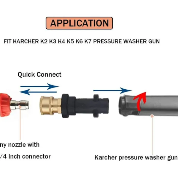 UPPDATERA TILLBEHÖR – Jet Washer Connector konverterar till 1/4″ snabbkoppling för Karcher K2-K7.