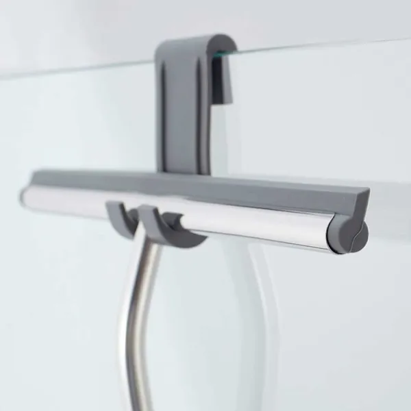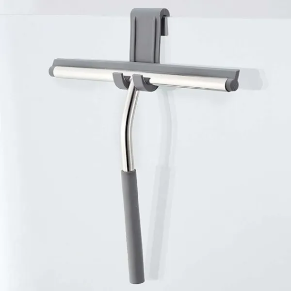 Premium Duschsqueegee i Rostfritt Stål, Hängande Utan Borrning, Silikon Duschsqueegee för Speglar, Fönster, Glasrengöring.-Grå