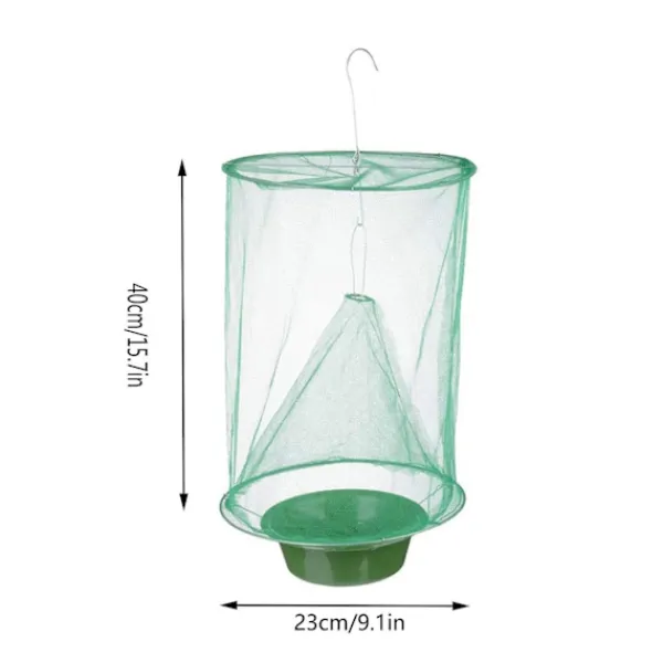 Användningsmetoden är enkel. Varje utomhusflugfångare innehåller en påse, men du kan också välja andra flugbetealternativ som fiskens inälvor eller rutten frukt. På våren och sommaren, häng flugfångaren på en solig plats, men se till att den inte utsätts för direkt solljus. Den breda tillämpningen av denna ranch utomhus flugfångare gör den lämplig för verandor, gårdar, sopområden, komposthögar, häststall, gårdar, trädgårdar, pooler och mer. Med denna flugbur kan du effektivt eliminera och kontrollera flugor, så att du kan njuta av utomhusaktiviteter utan att bli störd av dessa flygande skadedjur.