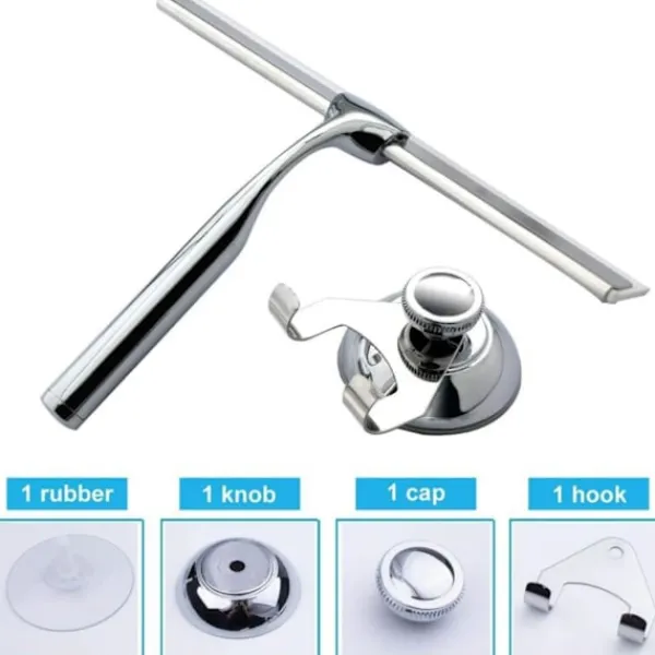 [Högkvalitativt utförande] — Duschskrapan är tillverkad av högkvalitativt rostfritt stål och kommer aldrig att rosta, mer hållbar än andra skrapblad. Gummiskrapbladet är formstabilt och tillräckligt hållbart för användning [Enkel installation] — Kräver inga verktyg eller hårdvarumontering. Kraftfull sugkoppsteknik fäster på icke-porösa ytor som fönster, glasväggar, dimmiga speglar, släta keramiska plattor, tvåliga duschdörrar, våtrum, bilfönster [Ergonomisk design] — Det ergonomiska T-handtaget ger ett pålitligt grepp, halkfritt grepp och minimerar handtrötthet. Du kan göra rengöringen väldigt enkelt [Lätt att använda] — Med den exakta kanten kan du torka den släta ytan från vattendroppar snabbt och enkelt. Det bästa rengöringsalternativet för din badrumsspegel/kakel, kök, glasfönster/dörr, bilvindruta [Sugkoppsinstallation] — Sugkoppen måste delas in i 4 delar; Gummibasen måste pressas på den släta och torra ytan förstPaketet innehåller: Duschskrapa, Duschskrapa i rostfritt stål med speciell sugkrok för upphängning på väggen, Vit silikon torkarblad Idealisk för rengöring av spegelglas
